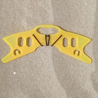 Plaquette d'enroulement des lignes. Pratique avec son élastique de fixation et ses deux ergots pouvant servir à égaliser vos lignes.